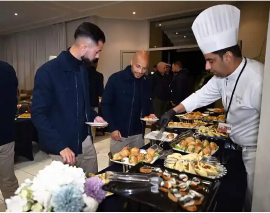 وأثناء الاستقبال ، تلقى الكابتن ” محمود الخطيب ” رئيس النادي الأهلي إتصالا هاتفيا من ” فوزي لقجع ” رئيس الاتحاد المغربي لكرة القدم رحب خلاله به وبجميع أعضاء البعثة .