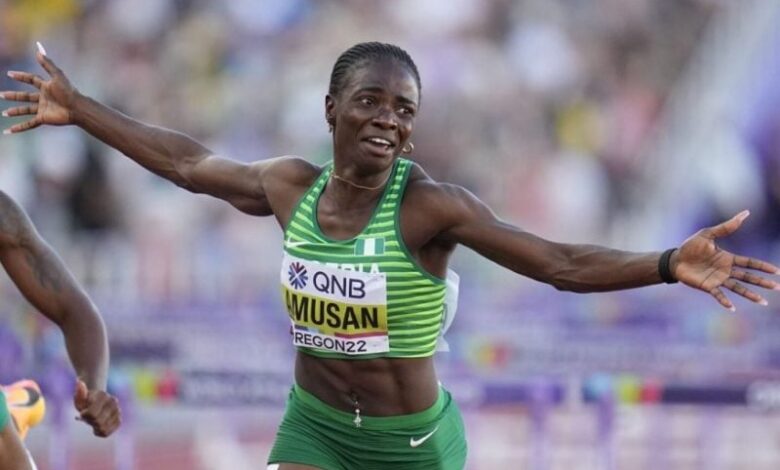 وسجلت أموسان الرقم القياسي العالمي في سباق 100 متر حواجز خلال الدور قبل النهائي لتصفيات السباق في بطولة العالم 2022 وهي مرشحة بقوة للفوز بالسباق في أولمبياد باريس 2024 الصيفي هذا العام .