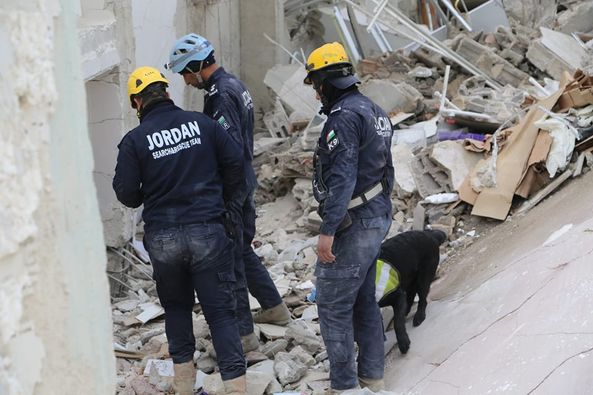 يواصل فريق البحث والإنقاذ الأردني الدولي، عمليات البحث والإغاثة، وأداء الواجب الإنساني في المناطق المتضررة من الزلزال، متضمناً99 منقذاً متخصصاً، و5 أطباء من الخدمات الطبية الملكية، ويعد من أفضل فرق البحث الإنقاذ في المنطقة والعالم.