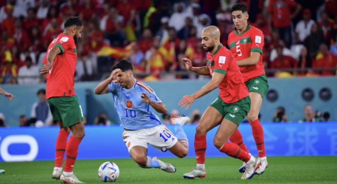 وتغلب المنتخب المغربي على نظيره الإسباني بركلات الترجيح (3-0) بعد نهاية المباراة التي جمعتهما في استاد “المدينة التعليمية” بالتعادل السلبي، ليبلغ دور ربع النهائي لأول مرة في تاريخه.