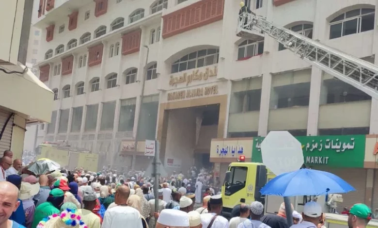 إندلاع حريق، يوم الثلاثاء، بفندق به عدد كبير من الحجاج المغاربة في مدينة مكة المكرمة .