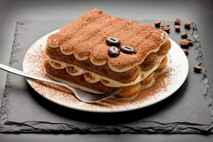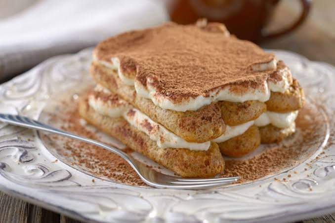 المكونات: (بسكويت أي نوع مفضل – كوب جبنة كريم – كوب كريمة سائلة – ملعقة صغيرة قهوة سريعة الذوبان – سكر بودرة حسب الرغبة – كاكاو خام أو شوكولاتة مبشورة للتزيين – كوب مياه أو لبن).