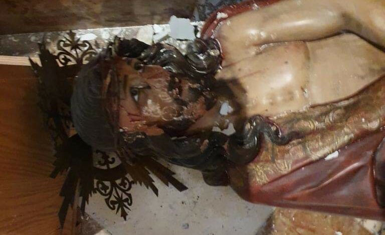 وقاموا بالعبث داخل الكنيسة وحطموا محتوياتها، وحاولوا إشعال النار فيها بهدف إحراقها