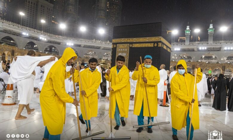 قامت الرئاسة العامة لشؤون المسجد الحرام والمسجد النبوي، ممثلة في “وكالة الرئاسة العامة للخدمات وتحقيق الوقاية البيئية”، بتوجيه جهودها للحماية أثناء سقوط الأمطار على المسجد الحرام.