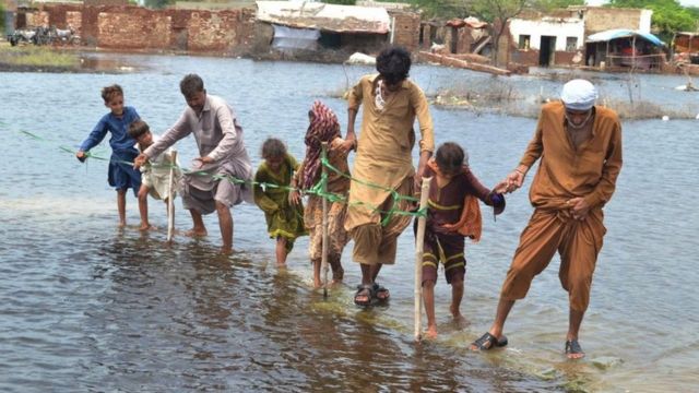 في مناطق شاسعة من باكستان، يواجه ملايين الأشخاص فيضانات ناجمة عن أمطار موسمية هي الأسوأ خلال عقود، إذ طالت الفيضانات أكثر من 33 مليون شخص، أي واحد من كل سبعة باكستانيين حسب الهيئة الوطنية لإدارة الكوارث.