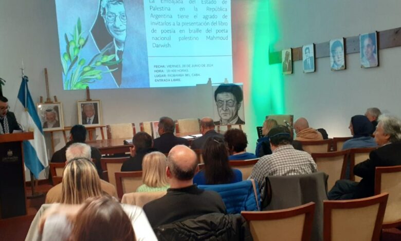 في سابقة تعد الاولى من نوعها، قدمت سفارة فلسطين لدى الأرجنتين، الكتاب الأول للشاعر الكبير محمود درويش بطريقة برايل للمكفوفين، في الدول الناطقة بالإسبانية وفي العالم.