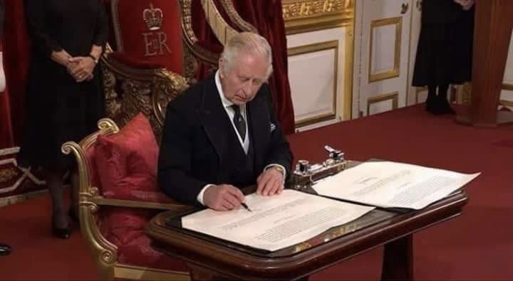 وأصبح تشارلز الآن رأس الدولة، وتمّ الانتقال السلس والرمزي من عهد إلى آخر، مع أداء القسم والتوقيعات.