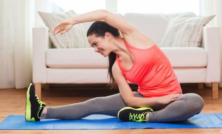 وفي موازاة ذلك من الضروري ممارسة بعض التمارين. ويقضي أحدها بالجلوس على الأرض ورفع الركبتين إلى أعلى مع تقريب القدمين من أسفل الجسم قدر الإمكان.