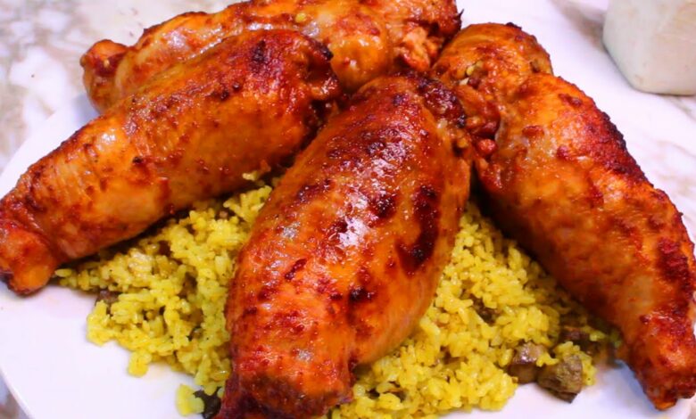نُحضر أوراك الدجاج المتبلة ويتم فردها، ثم بوضع بداخلها حشوة الأرز ويتم لفها على الحشو .
