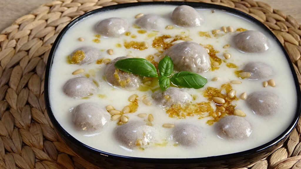 الكبة اللبنية هي عبارة عن كرات صغيرة مصنوعة من البرغل واللحم ومحشية باللحم المفروم المتبل بمختلف البهارات مثل الصنوبر المفروم ثم تطبخ في خليط اللبن لزيادة النكهة، وتقدم مع الأرز أو الخبز كطبق رئيسي، وهي من الوجبات الصحية والمغذية، فهي تحتوي على نسبة عالية من البروتينات والكربوهيدرات التي يحتاجها الجسم يوميا كما أنها غنية بالعناصر الغذائية مثل األلياف والعديد من المعادن أهمها معدن الكالسيوم.