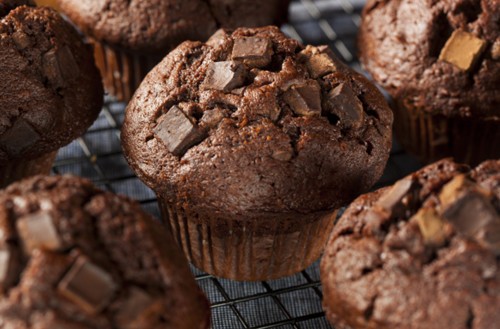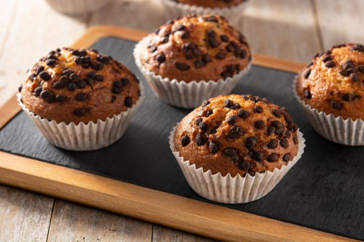 • اسكبي مزيج المافن داخل الورق الذي تم وضعه في صينية مسبقا، وزينيه بما تبقى من حبيبات الشوكولاتة.