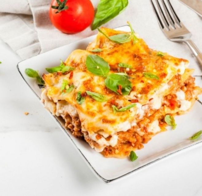 4 – تجهيز الصينية ، عليه ملعقة سمنة و نضيف أول طبقة من المكرونة و عليها ملعقة من خليط البشاميل ثم بعد ذلك نضيف اللحمة المفرومة و نسويها على الصينية ثم الطبقة الثانية من المكرونة و نضيف البشاميل في وش الصينية بالكامل ، ثم نضعها على فرن ساخن لمدة 45 دقيقة حتى يحمر وجها ، تقدم ساخنة وصحة و هنا.