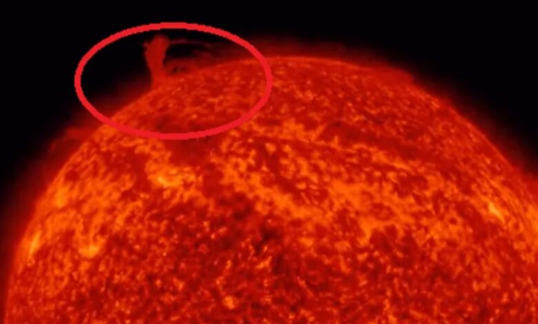 التقطت وكالة الفضاء الأمريكية ” ناسا ” ڤيديو للشمس ، ولكن ظهر فيها ما آثار حيرة ودهشة العلماء وهو إنفصال أحد خيوط الشمس العملاقة التي تقترب من القطب الشمالي لها وهذا الأمر لم يرصد من قبل .