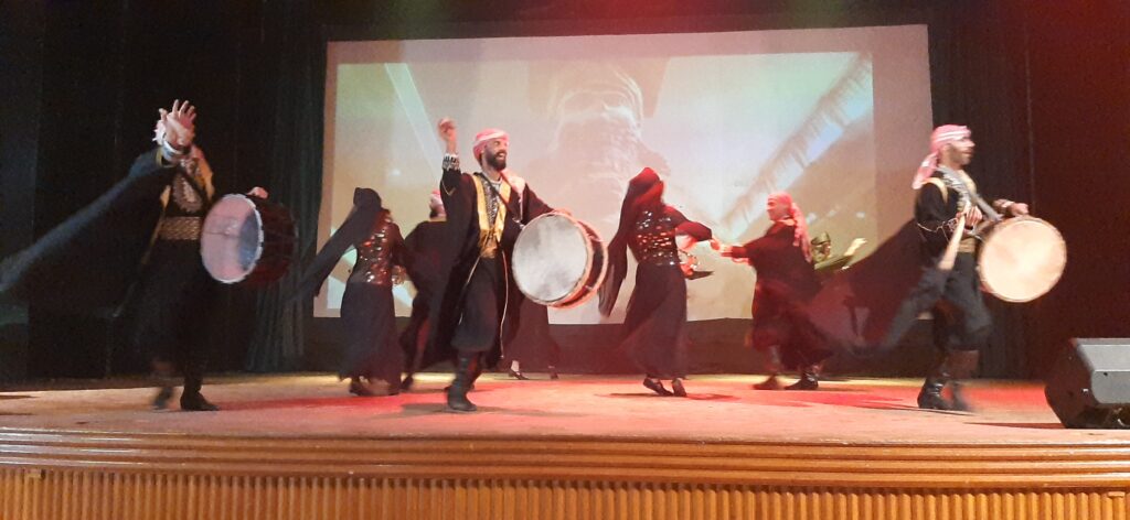 وتميزت فرقة المهرة السورية بتقديم عرضها الفني المسرحي الغنائي الإستعراضي الراقص بعنوان “يوم الثقافة السورية يوم للفرح والأمل”