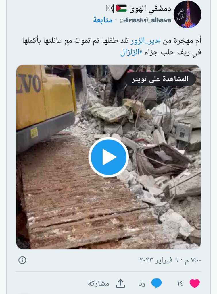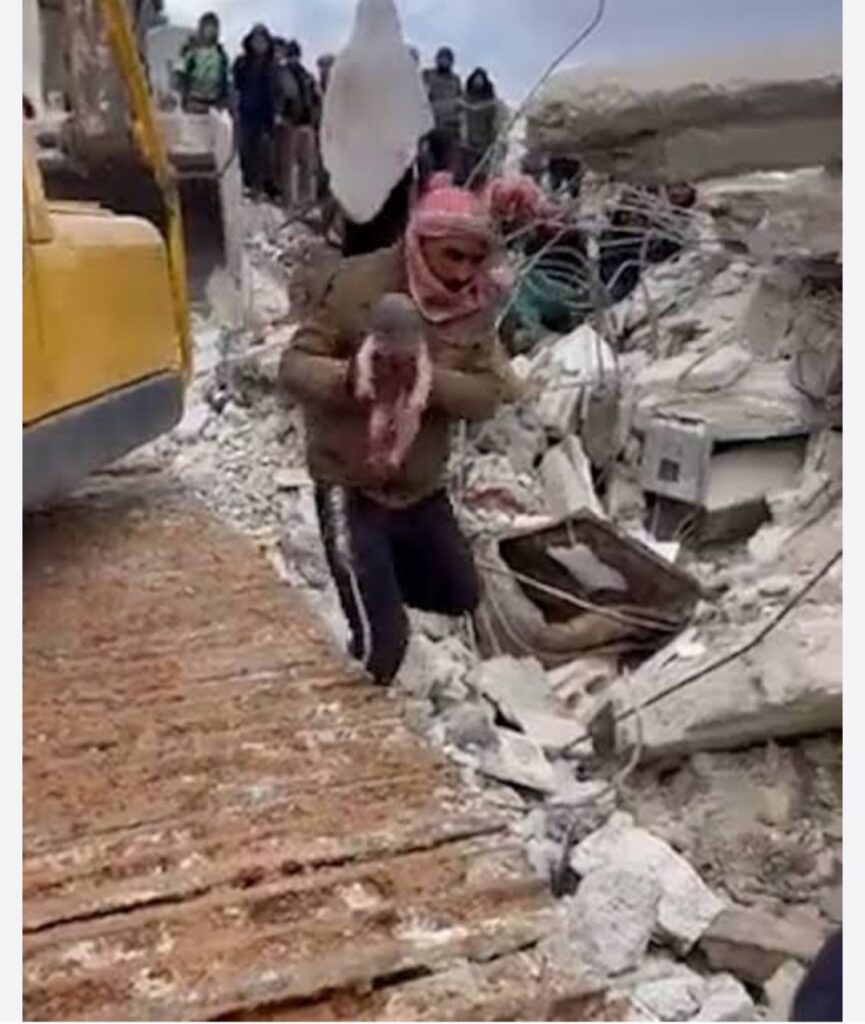 إنتشر على مواقع التواصل الإجتماعي ڤيديو تدمع له العين لطفل ولد تحت أنقاض مبنى تهدم جراء الزلزال الذي ضرب سوريا وتركيا صباح أمس .