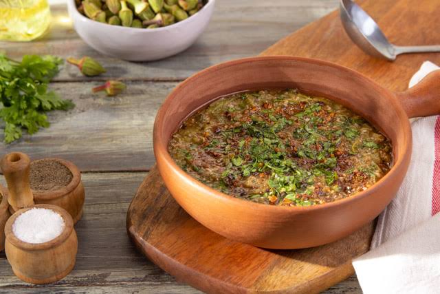 ثم تقدم ساخنة مع الخبز والباذنجان المخلل .