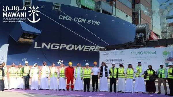 استقبل ميناء الملك عبد العزيز بالدمام، أول سفينة حاويات تعمل بالغاز الطبيعي المسالLNG، وتحمل أسم CMA CGM SYMI.