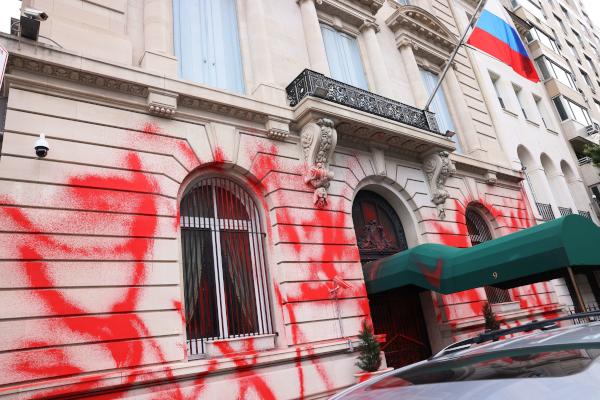 تعرضت القنصلية الروسية في مدينة نيويورك للتلطيخ بطلاء أحمر في وقت مبكر أمس الجمعة، يبدو أنه احتجاجا على استمرار غزو أوكرانيا وبالتزامن مع استعدادات الرئيس الروسي فلاديمير بوتين لضم 4 مناطق أوكرانية للاتحاد الروسي.