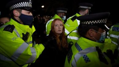 اعتقال شابة تبلغ من العمر 22 عامًا للاشتباه بإلقاء كلمة داعمة لحماس في بريطانيا ، واستجواب المشاركين .