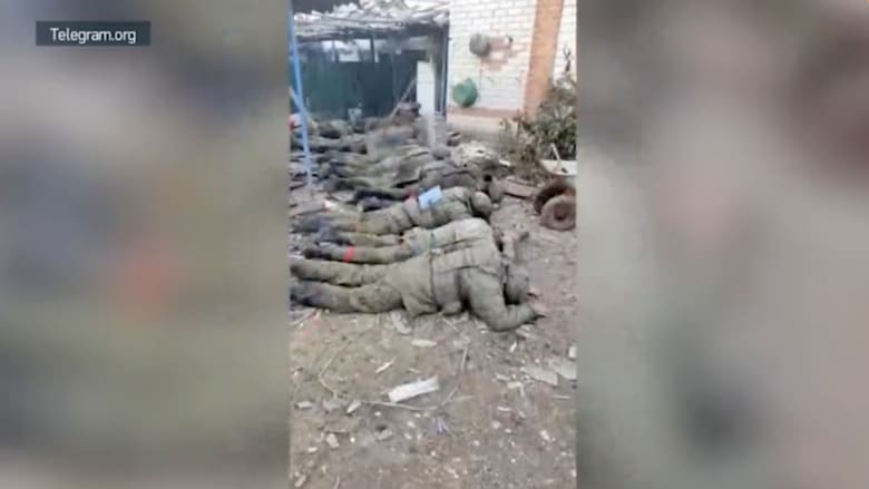 ويزعم الفيديو الذي تم تحريره أنه يظهر مجموعة من الجنود الروس مستلقين على الأرض وأيديهم فوق رؤوسهم، وتم قتل الجنود الروس في قرية ماكييفكا التي تم تحريرها في منطقة لوغانسك الشرقية.